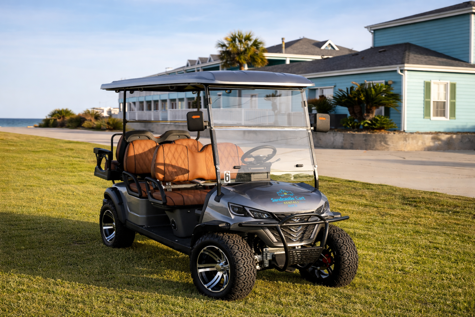 Premium 6 and 8-seater beach carts delivered to your door. The best way to see Port Aransas with your family or group.